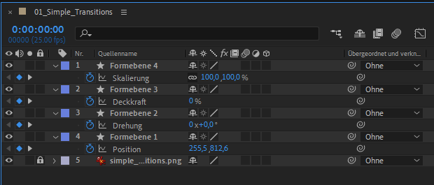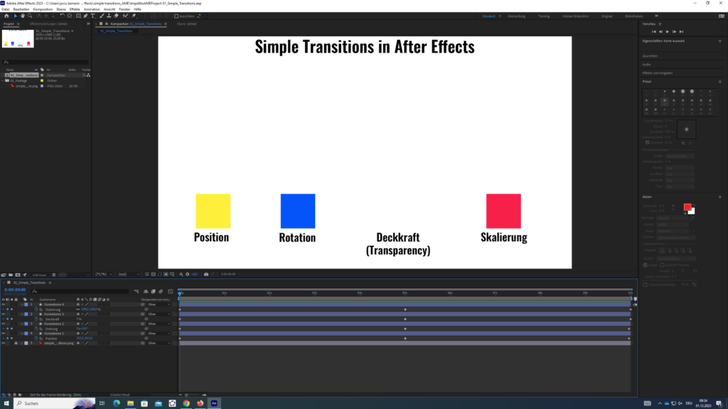 Wir haben mit After Effects dieses Video erstellt, indem wir verschiedene Figuren aufgezogen haben, Position, Deckkraft und mehr bearbeitet haben.