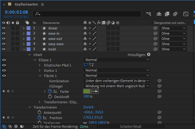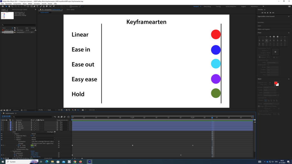 Bei dieser Aufgabe haben wir mit After Effects gearbeitet. Wir haben dafür einen Kreis erstellt, ihn mehrmals dupliziert und die Positionen geändert. Das haben wir gemacht, indem wir mit den Tabstopps gearbeitet haben.
